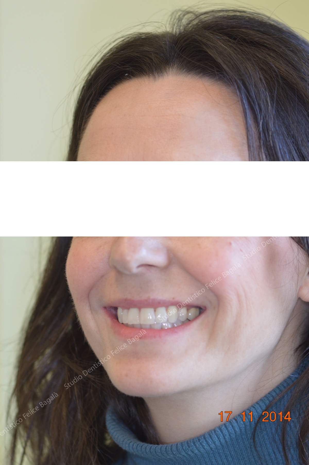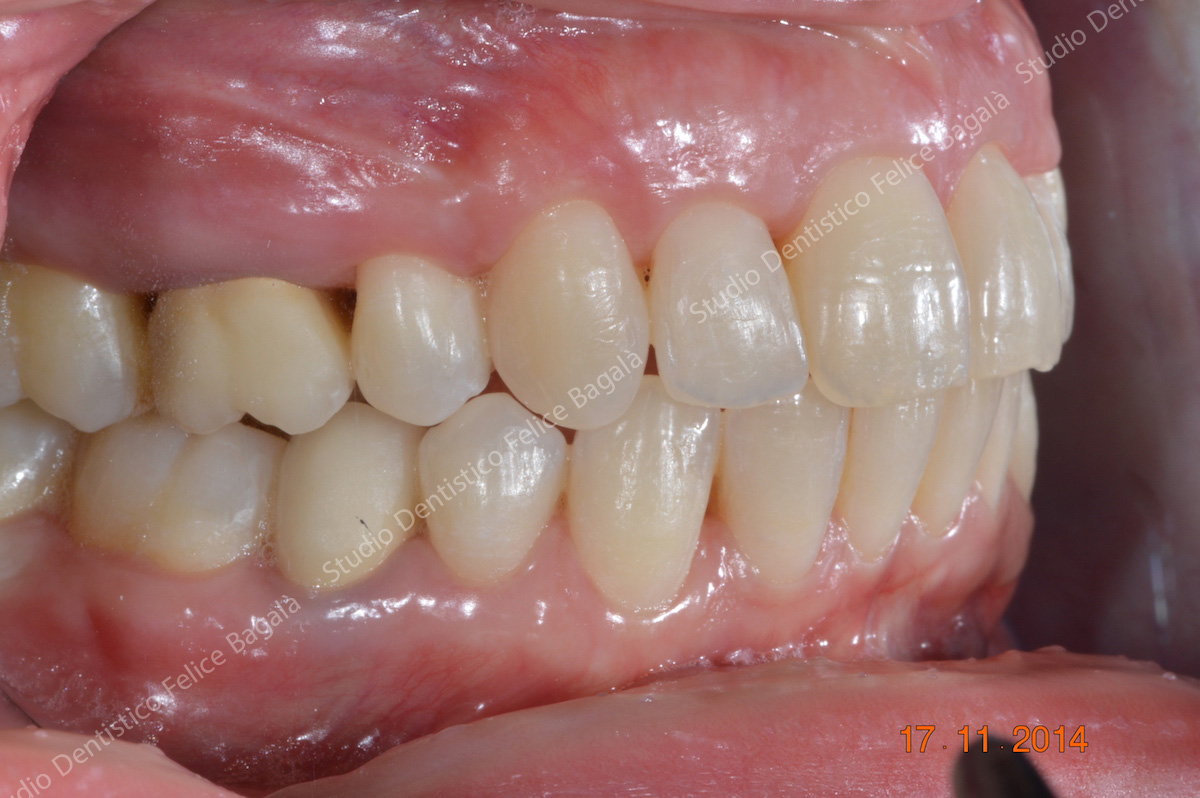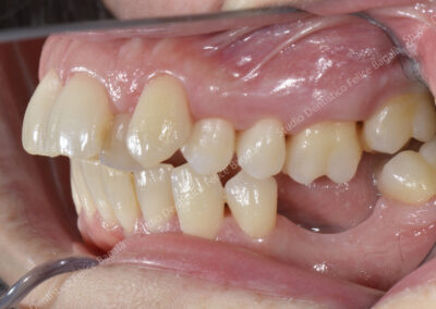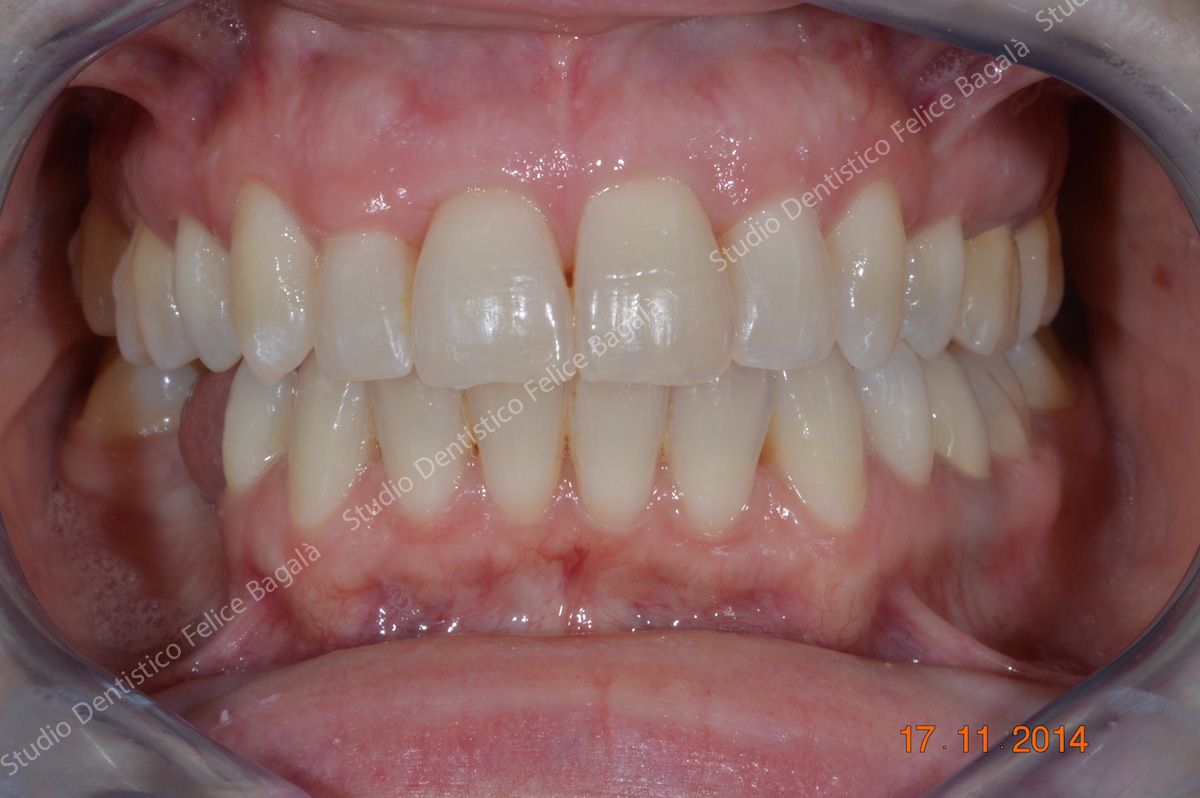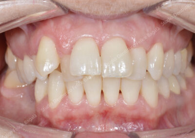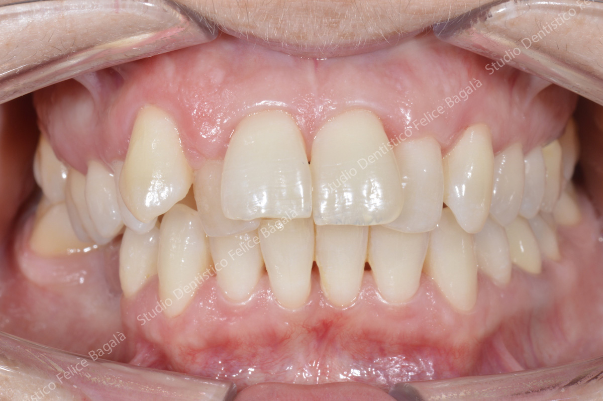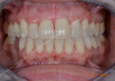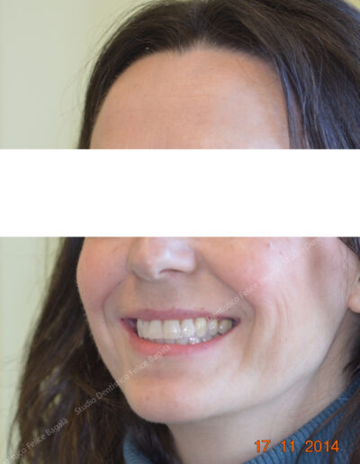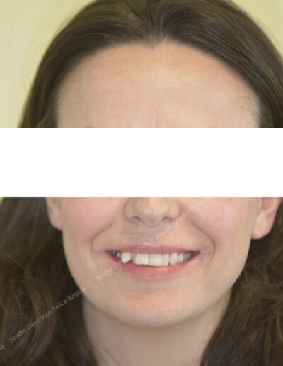 Caso di ortodonzia linguale invisibile di una paziente adulta con estrazione dei primi premolari superiori. Tempo di cura 16 mesi con un ottimo risultato visibile dal sorriso. Questo è un esempio del non aver potuto trattare per tempo una “chiusura sbagliata” con conseguente inestetismo da adulta. Una terapia precoce a 10 anni circa avrebbe evitato le estrazioni, delle quali per altro, non c’è traccia. Molto bello il sorriso “pieno” a fine cura. Una ortodonzia ben eseguita dona un sorriso per sempre.