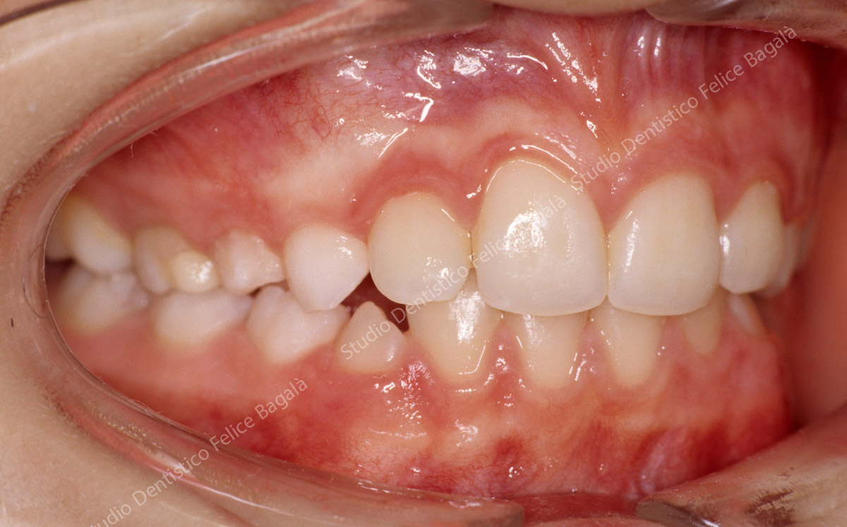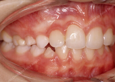 Daniele 8 anni Morso crociato destro con deviazione mandibolare  e linee mediane dallo stesso lato (vedi frecce nere). Dopo allargamento della parte superiore (mascellare e palato) la mandibola si porta al centro (vedi frecce nere) . Daniele da quel momento continuerà a crescere e sarà controllato periodicamente. Dopo questo breve fase intercettiva di durata di 8/10 mesi non ha avuto più alcun bisogno di ortodonzia. Le deviazioni mandibolari da morso crociato vengono annoverate tra i principali motivi di disturbi muscolo articolari ( Disfunzioni ATM) nell’adulto.