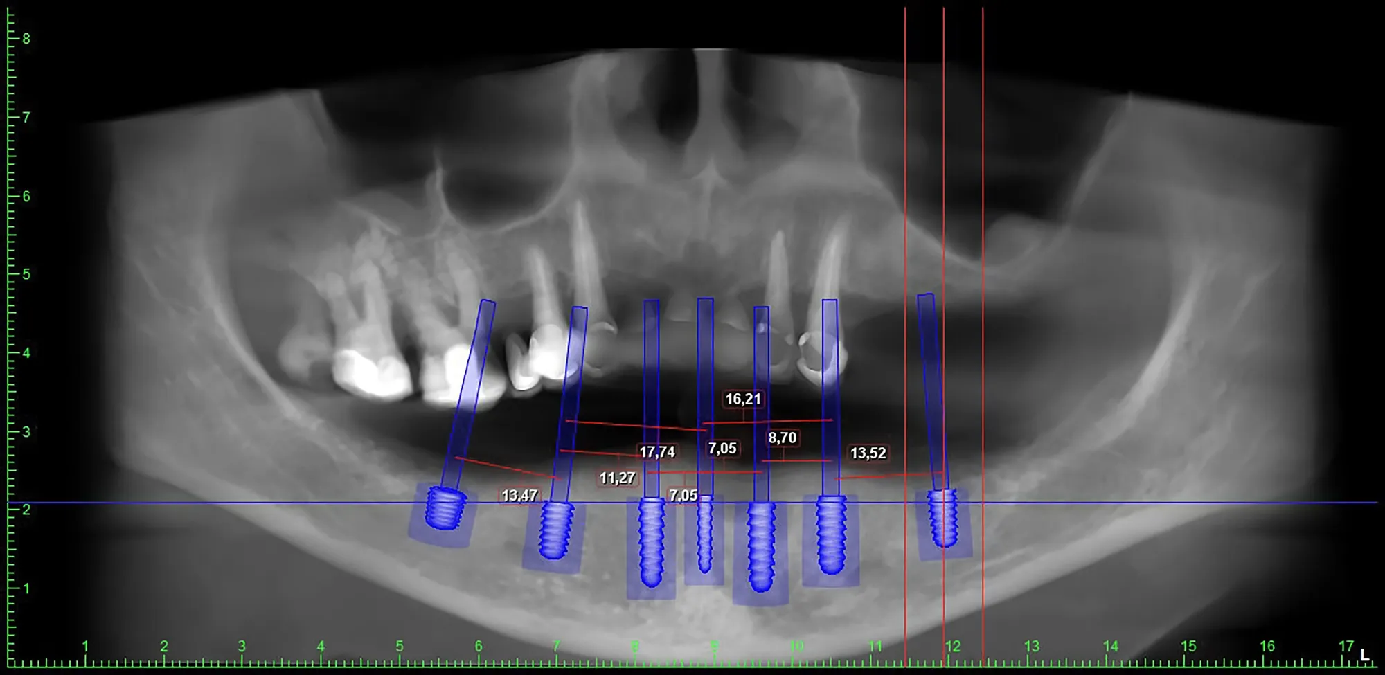 - Pianifichiamo virtualmente l’intervento decidendo il numero, la posizione e l’angolazione ideale degli impianti.